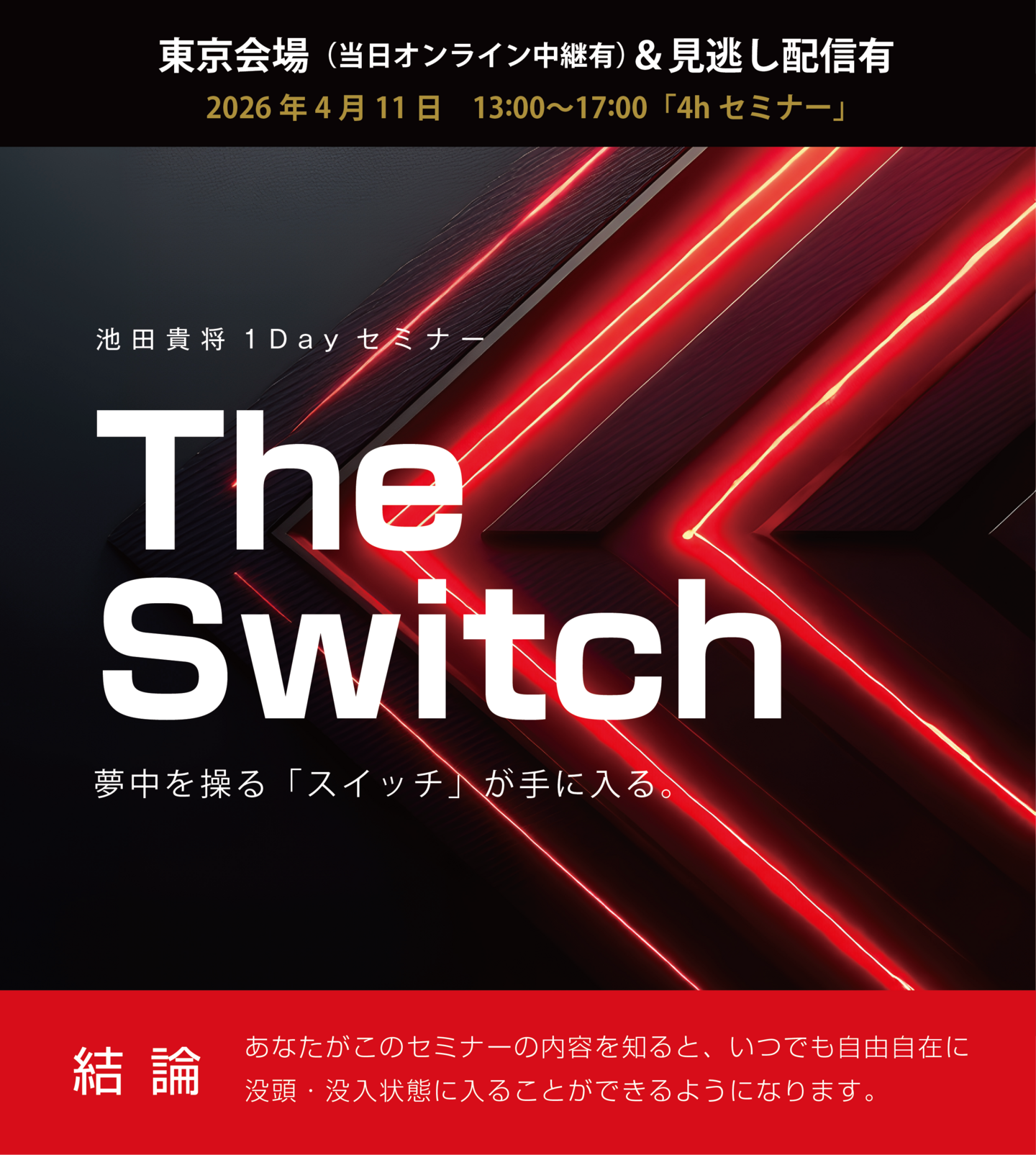| 開催日時 | 2026年 4月11日(土)13時00分〜17時00分 ※当日は、東京会場でのリアル参加 または オンラインライブ中継にてご参加いただけます。 ※後日、期間限定でのアーカイブ配信もご準備しておりますので、当日ご参加が難しい方もご安心ください。 |